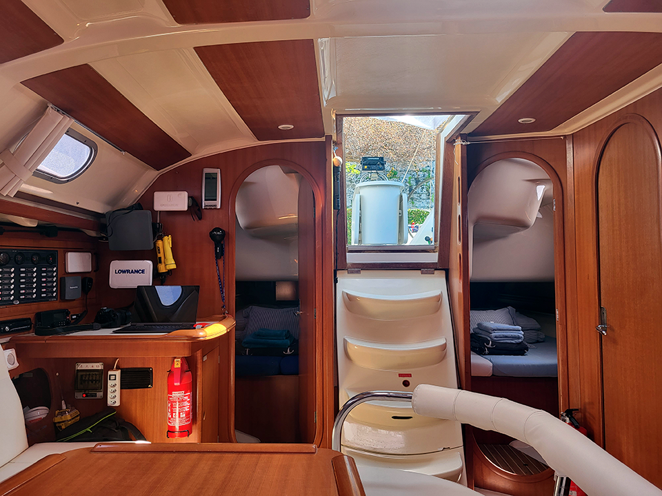 Notre Gib’Sea 43 est un classique dans sa série : performant et confortable. C’est un bateau taillé pour les groupes amateurs de belles navigations et d’escales sauvages. Il peut accueillir aisément 6 personnes avec ses 4 cabines sans que le skipper en soit gêné. Le yacht est entièrement équipé, bien entretenu, avec une propreté parfaite, y compris toutes les caractéristiques de sécurité.