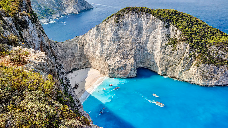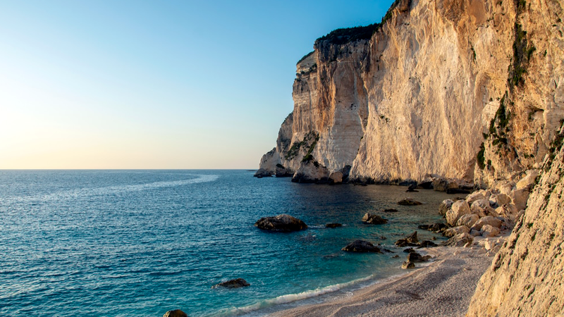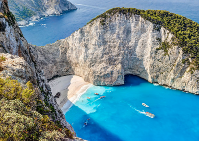 Zakynthos (Zante) est populaire pour ses plages de cristal et sa vie nocturne animée attirant chaque année de nombreux visiteurs et célébrités. Navagio (naufrage) est l’une des plages les plus populaires de l’île, où les eaux turquoise, les falaises et la plage blanche créent un paysage magnifique. Vassilikos est une plage dorée aux eaux bleues cristallines et peu profondes, idéale pour la tranquillité. Un arrêt incontournable sont les grottes de Keri dans le côté sud-ouest de l’île, accessibles uniquement par bateau. Sautez directement dans les eaux profondes et profitez de la mer!