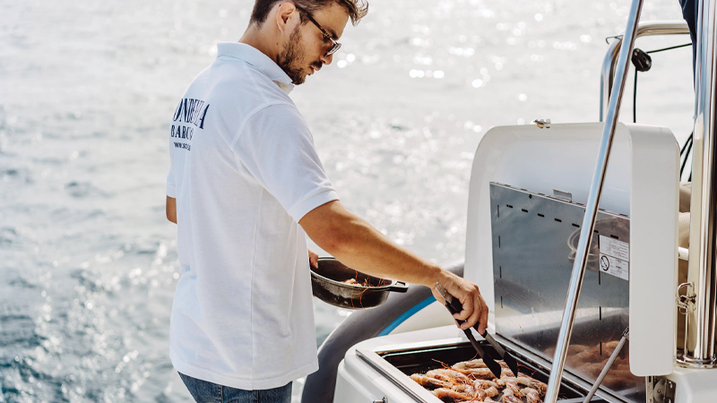 L’hôtesse est la garante de votre confort au quotidien. Elle s’assure que le carré reste impeccable, prépare vos petits-déjeuners ainsi que des déjeuners légers et frais aux saveurs méditerranéennes. Elle assure également le service des boissons et vous assiste dans l’organisation de vos escales à terre.