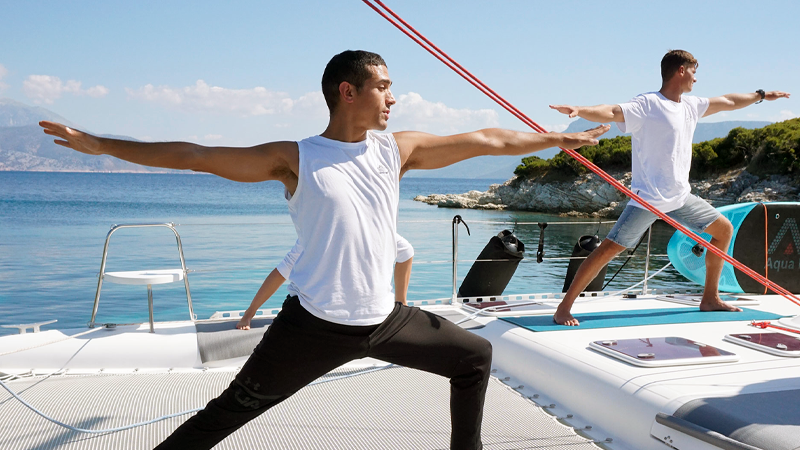 Ne perdez pas le rythme pendant vos vacances. Votre coach organise des séances de fitness, de circuit-training ou de renforcement musculaire sur le pont ou à terre, en utilisant l'environnement naturel comme terrain de jeu.